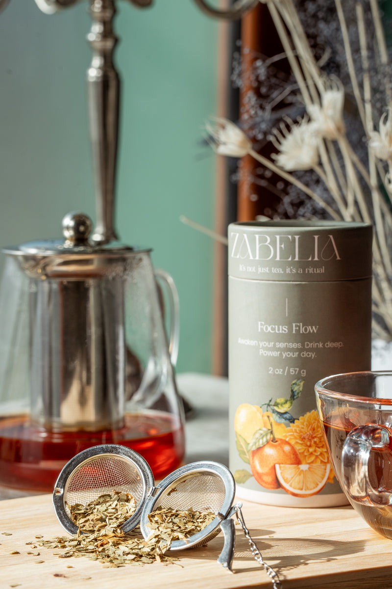 Carefully crafted from organic, sustainably sourced ingredients, Zabelia teas transform your daily ritual. Energize with Focus Flow or slow down with Evening Unwind — your wellbeing, one cup at a time.